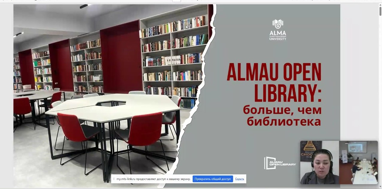 «AlmaU Open Library: кітапханадан да артық» тақырыбындағы баяндама аясында AlmaU кітапханасын дамыту және ілгерілету бойынша заманауи пайдаланушылардың қажеттіліктеріне бағытталған практикалық тәсілдер ұсынылды. Біз кітапханада жүзеге асырылып жатқан іс-шаралар туралы және олардың студенттерді тартуға, сондай-ақ олардың уақытын кітапханада пайдалы әрі қызықты өткізу дағдыларын қалыптастыруға қалай ықпал ететіні туралы баяндадық.